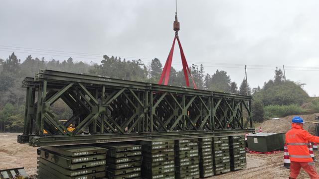 集训现场,专业设备与人力协作的画面随处可见。24米321型钢桥的构件在雨中有序转运,队员们冒雨拆解、精准拼接,雨水顺着安全帽檐滑落,却丝毫未打乱操作节奏;无人机盘旋升空,实时传回地形数据,为指挥决策提供可视化支撑;德宏公路局的通信设备快速架设启用,即便在信号薄弱的山区,也实现三地指挥系统实时互联、指令无缝传递。训练同期开展智慧屏、背负式站、卫星电话、宝利通软终端、卫星便携式基站、无人机运载等多种应急通信设备实操演练,进一步提升应急通信协同作战能力。